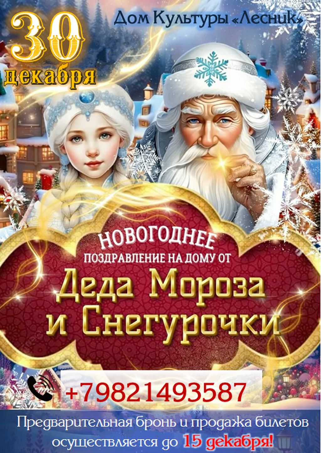 ️ Спешите воспользоваться уникальной возможностью и подарите своему ребенку настоящее чудо! Билеты ограничены, торопитесь забронировать встречу с Дедом Морозом!