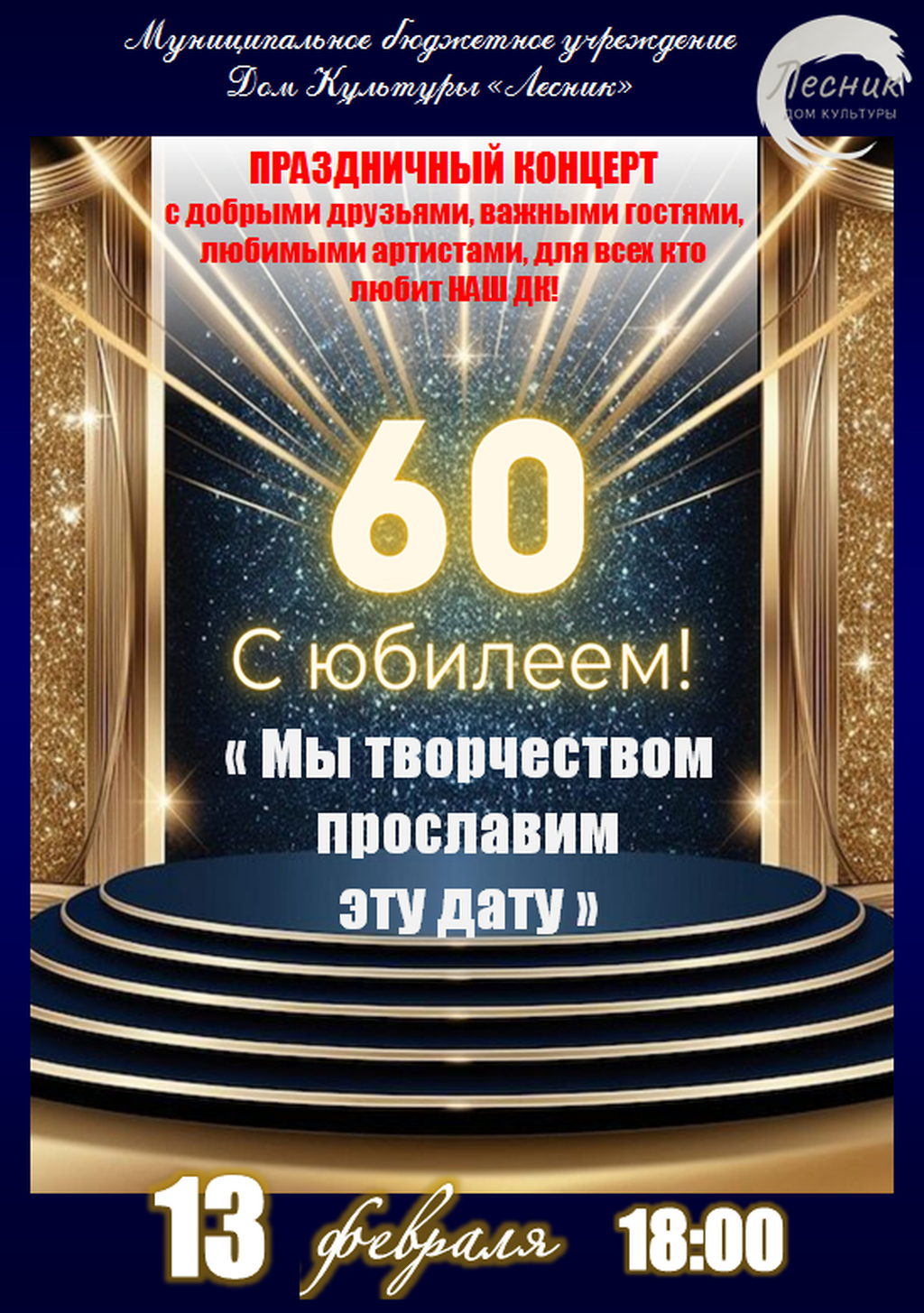 Приглашаем вас разделить с нами радостное событие — 60‑летний юбилей Дома культуры «Лесник»! 🎂🎶