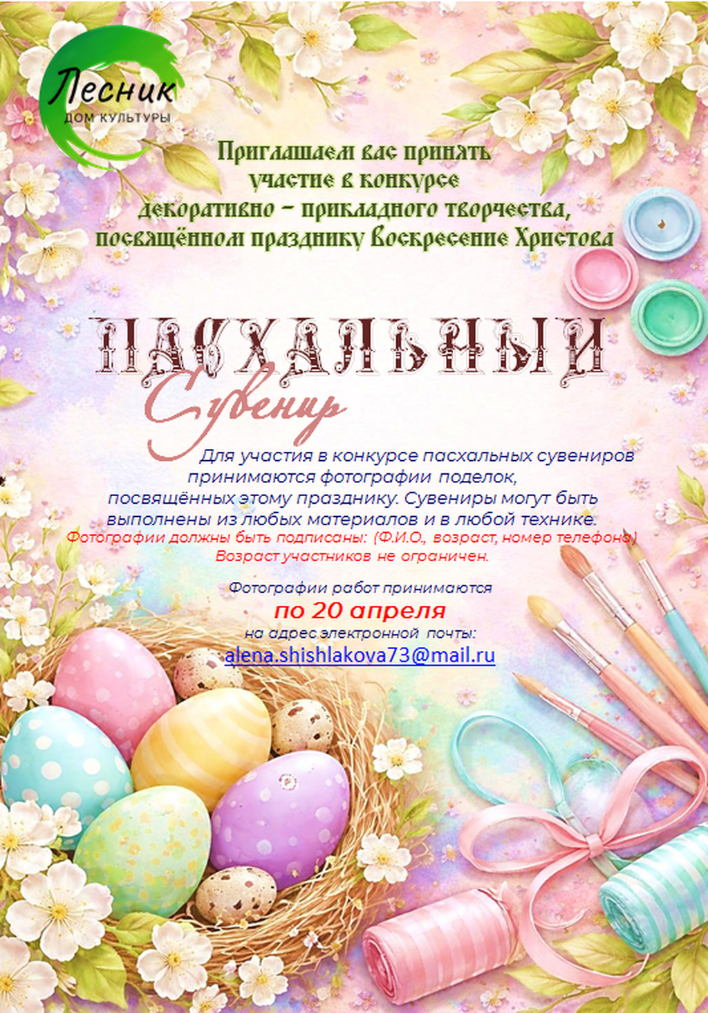 #ДКЛесник_Унъюган #ПасхальныйСувенир #Афиша #Конкурс #Объявление